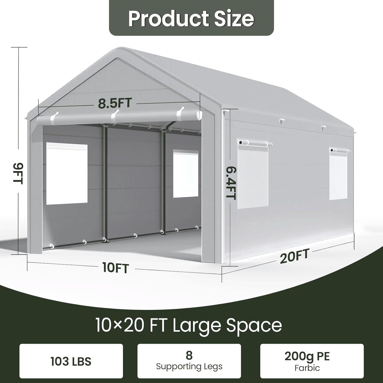 - LARGE CARPORT: The 10 ft × 20 ft carport garage provides you with more spacious parking space for vehicles, trucks, and boats. The car shade can meet your parking, party, wedding, or commercial needs