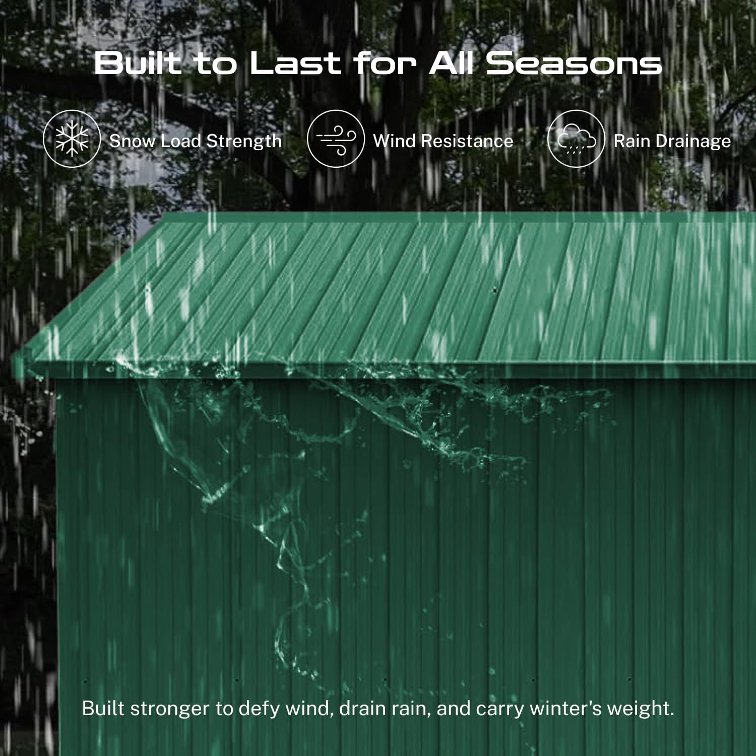- ā [Sloped Roof for Superior Weather Protection] Designed for real-world conditions, the efficient sloped roof system guarantees optimal rainwater drainage, preventing damaging pooling and leaks. This key feature in our storage buildings and sheds clearance design minimizes maintenance and ensures your tools, equipment, and belongings stay consistently dry inside