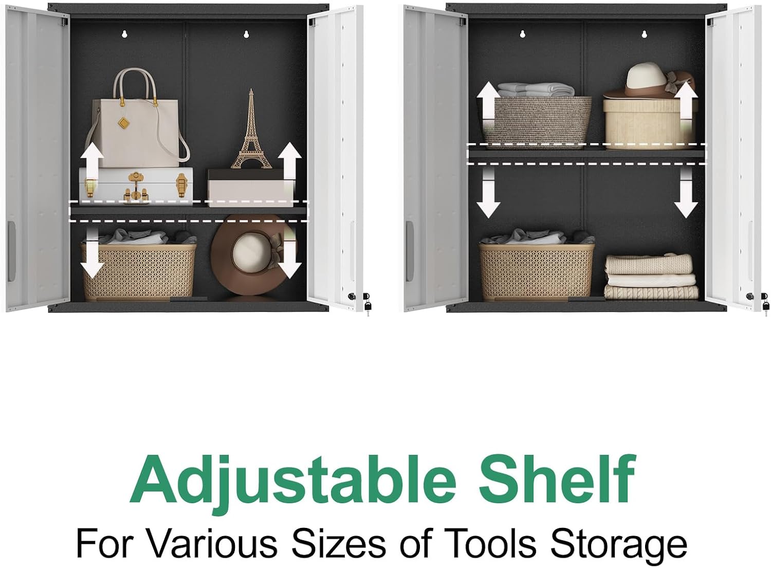 • Multi-scene Use: Wall cabinet is suitable for home, garage, warehouse, kitchen, tool room, especially for garage and tool room, for you to place tools and daily necessities to provide sufficient safe storage space, keep the room clean.