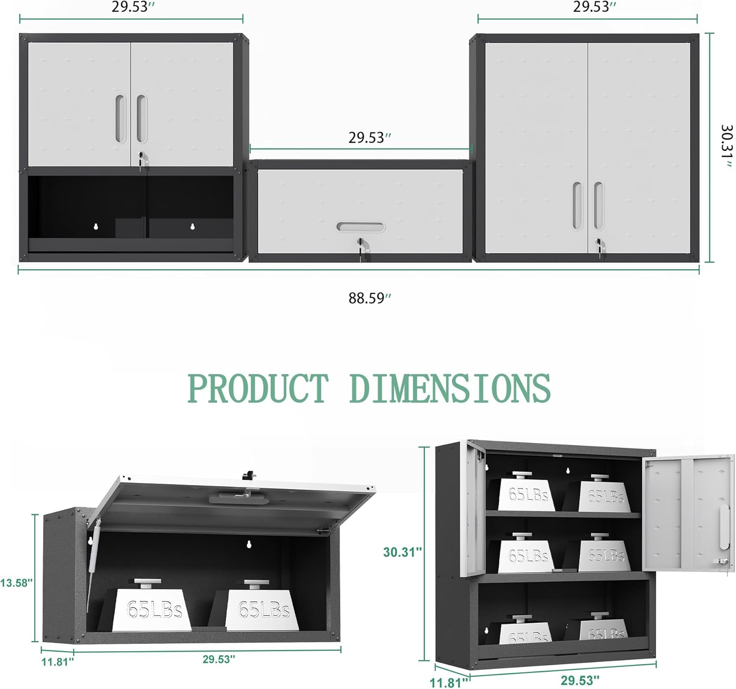 Metal Tool Cabinet,Garage Storage Cabinet System,Wall Cabinet & Locking Rolling Tool Cabinet with Doors and Adjustable Shelves,Steel Tool Cabinets for Home,Office (3 Pcs-StyleA, Black & Grey)