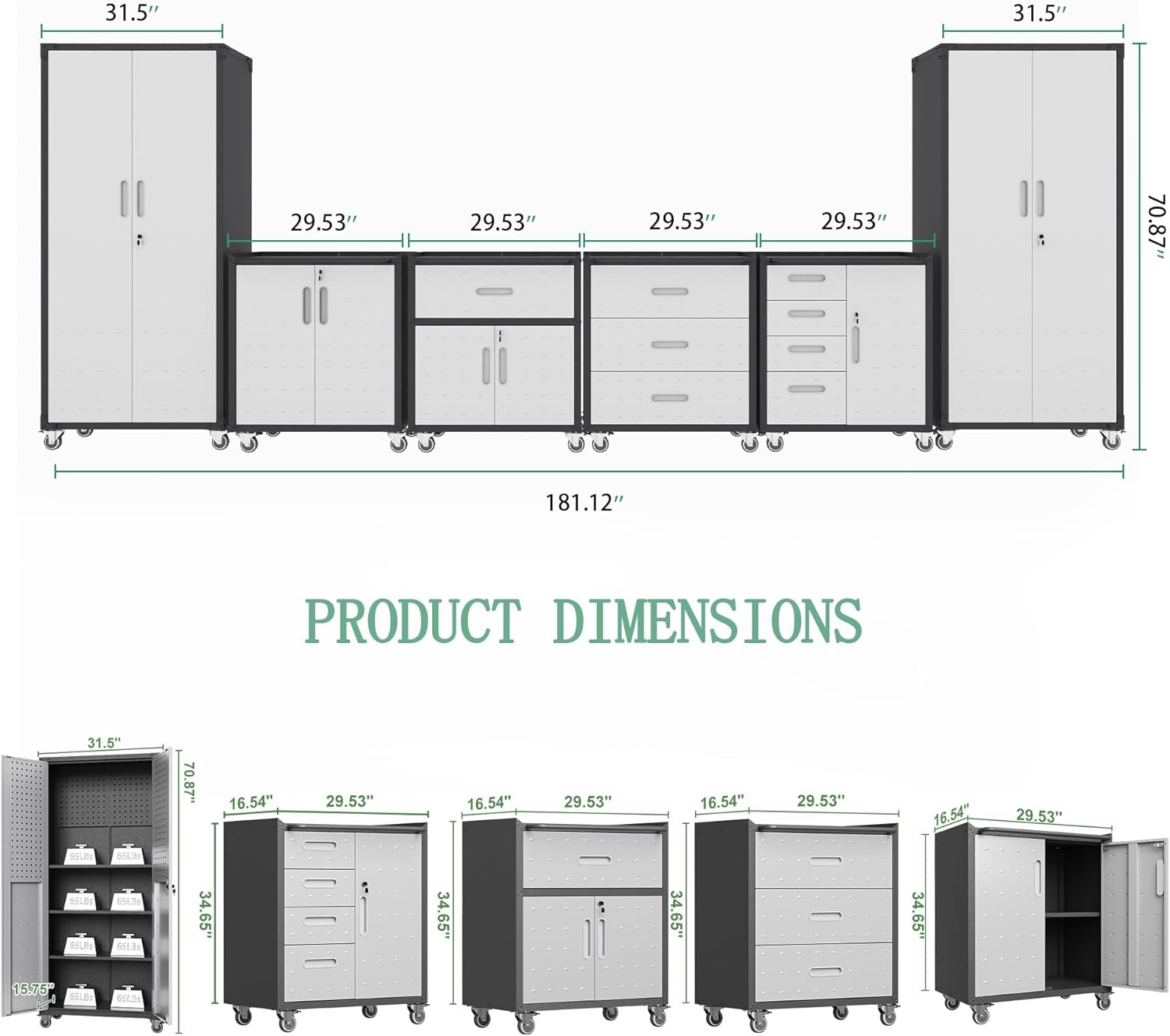 Metal Tool Cabinet,Garage Storage Cabinet System,Wall Cabinet & Locking Rolling Tool Cabinet with Doors and Adjustable Shelves,Steel Tool Cabinets for Home,Office (6 Pcs-StyleA, Black & Grey)