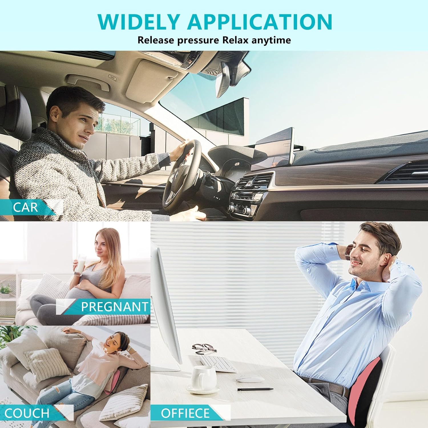 - [Multi-Purpose Versatile] Seat cushion and lumbar pillow are ideal for long office hours,ideal for office, home, and travel, it fits various seats like office chairs, wheelchair, gaming chair, car seats, SUVs, trucks, airplane seats, sofa, and sleeping.