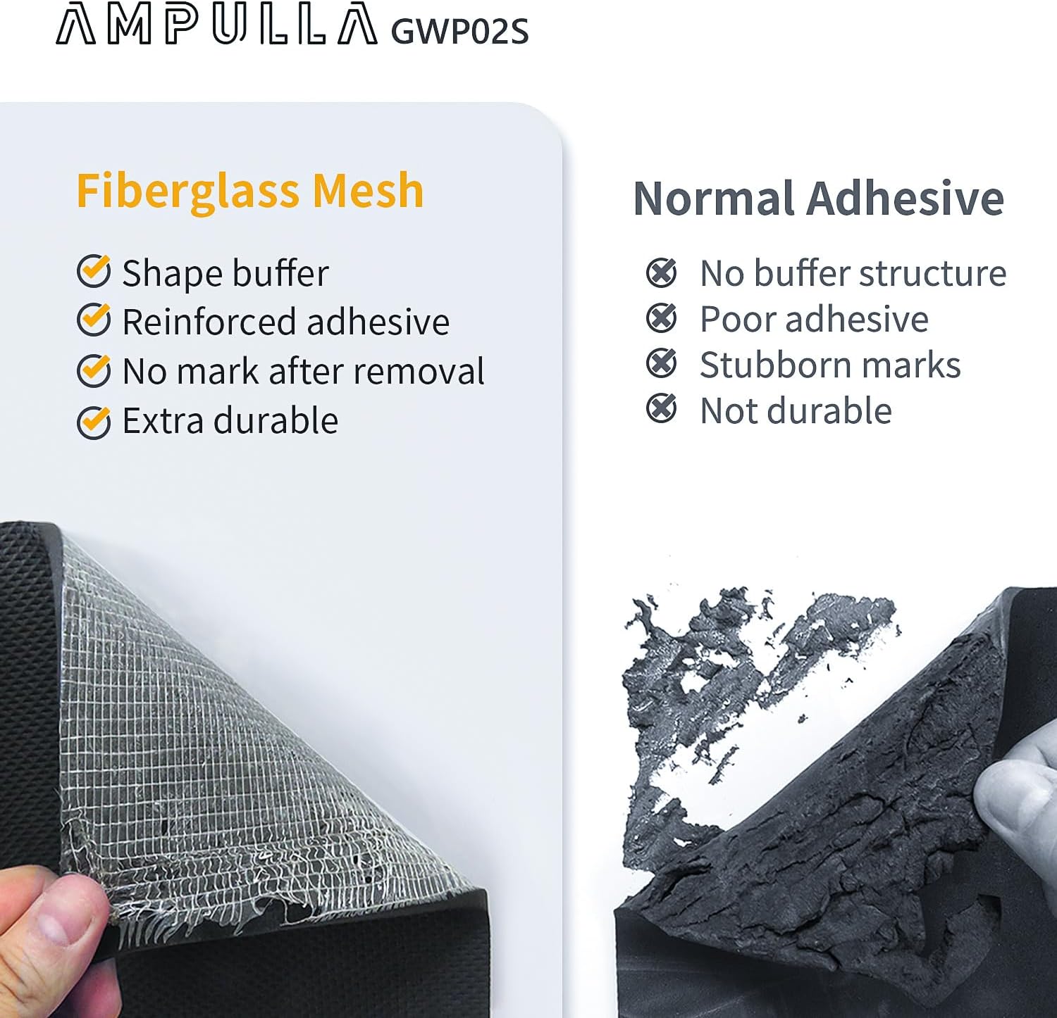 - Fiberglass Mesh Adhesive Structure – The adhesive force is reinforced by its unique integrated back adhesive structure. The interlaced fiberglass allows the wall protectors to be removed without tearing the soft protector or leaving marks on the wall. The non-tearing self-adhesive cover can be peeled off easily.