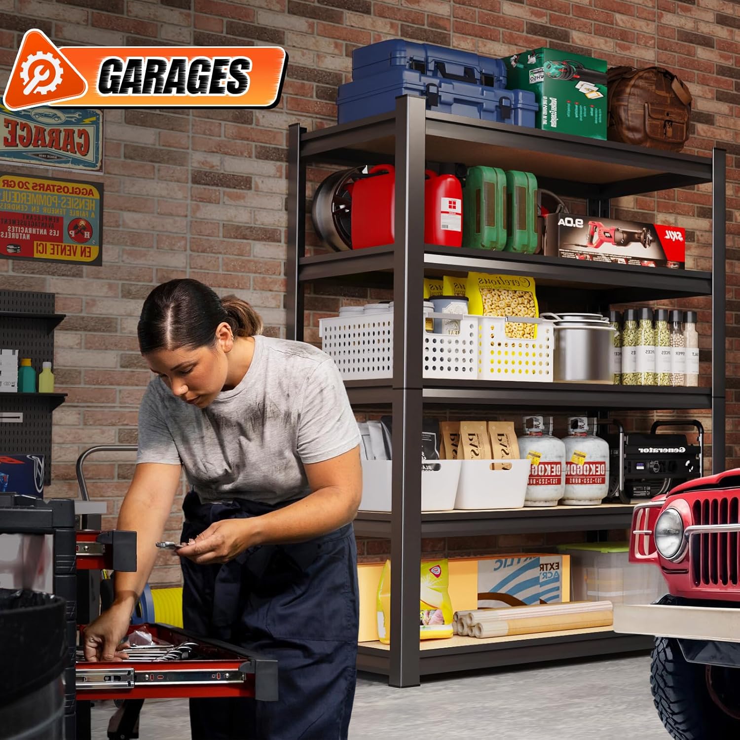 - 【Adjustable Shelves & DIY Flexibility】The garage shelving heights are adjustable in multiple positions, so whether you’re organizing small items or tall equipment, you can tweak the space to maximize storage—great for customizing metal shelves to fit your needs. What’s more, you can split one garage shelf into two separate units, adding versatility that’s perfect for adapting to different spaces, from garage storage shelves for bulky items to garage shelves for smaller tools and accessories.