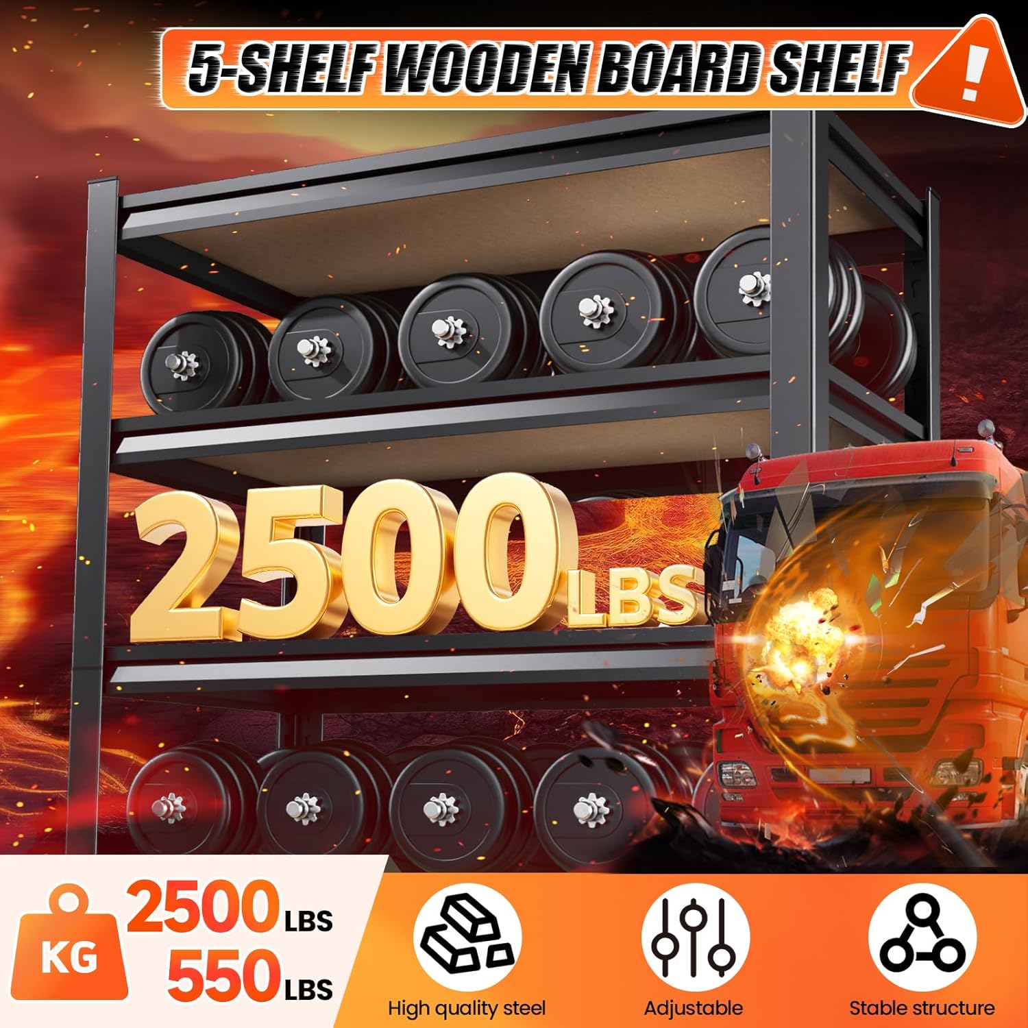 72" H*46'' Storage Shelves 2500lbs Garage Shelving Adjustable Heavy Duty Garage Shelves Easy To Install Metal Shelving Wood Shelving Unit Storage Shelf for Basement Warehouse Industrial Kitchen Pantry