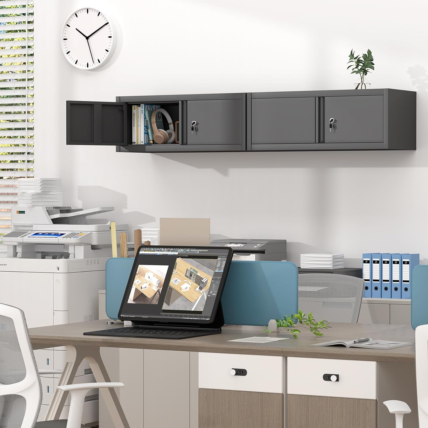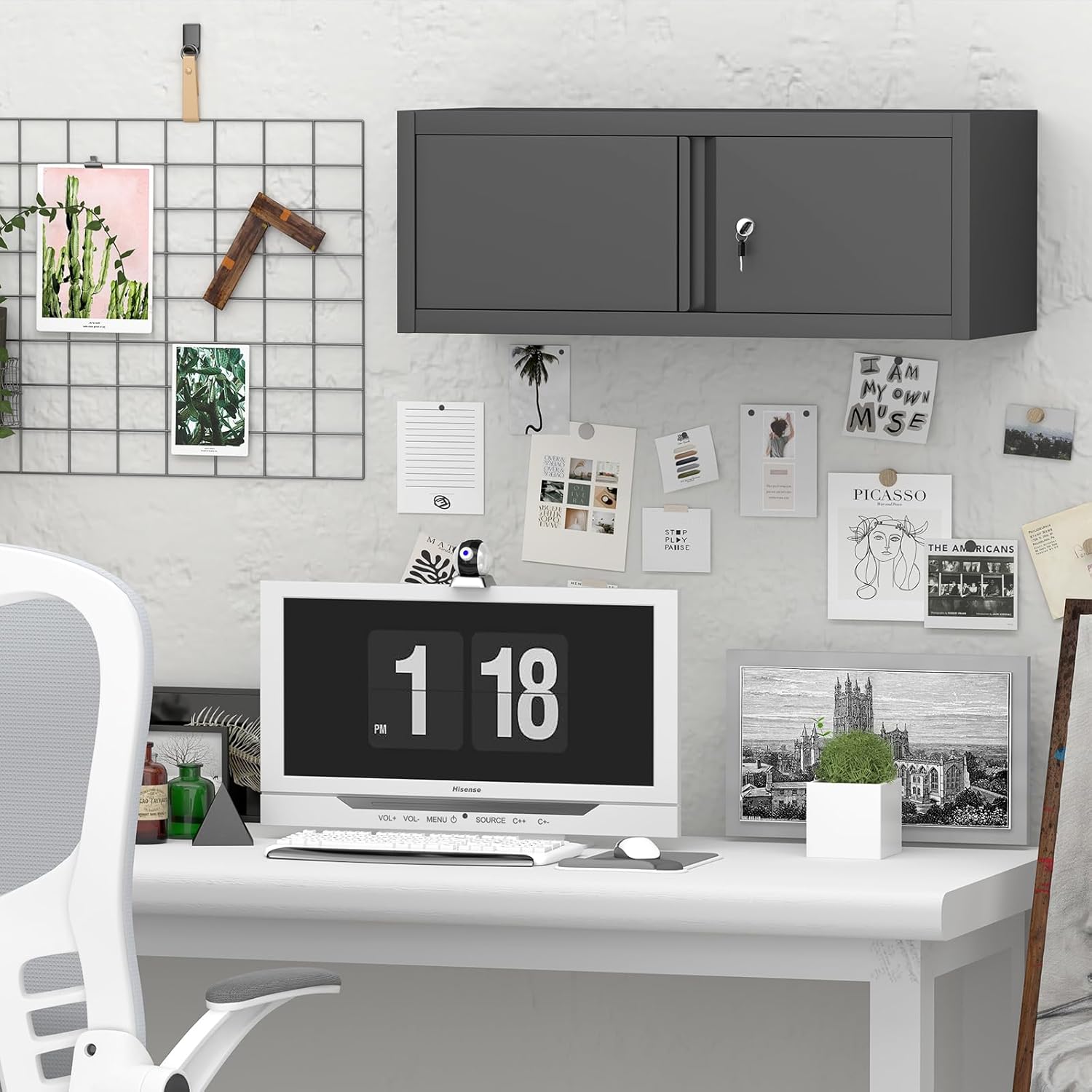 - 【Wall Mounted Storage Cabinet】This durable floating wall mounted cabinet with lockable doors and gooseneck handle, compact size, you will find it suitable for your garage, home office, bathroom, pantry or utility room