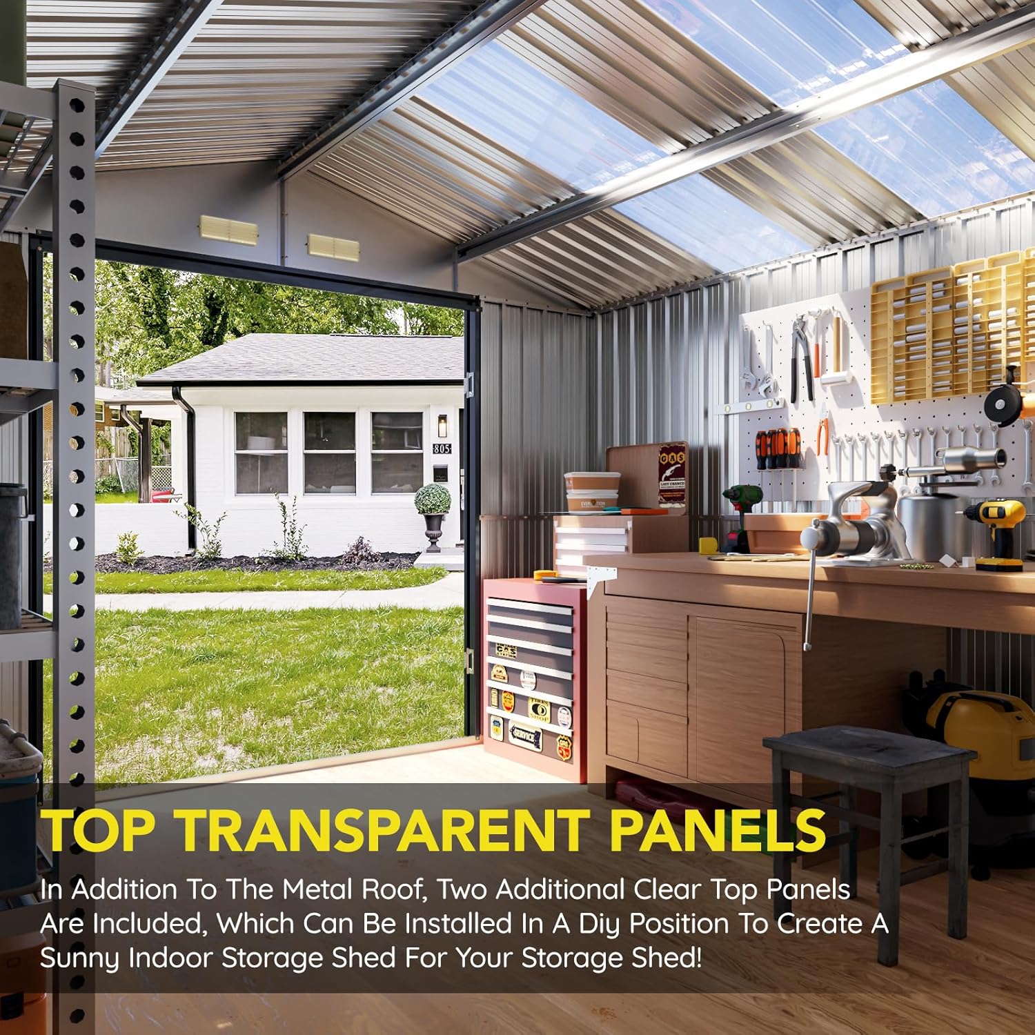 10x12 FT Outdoor Metal Storage Shed, Double Swing Doors, 2 Clear Windows, Replaceable Skylight Roof Panel, Tool Shed for Garden, Patio, Backyard