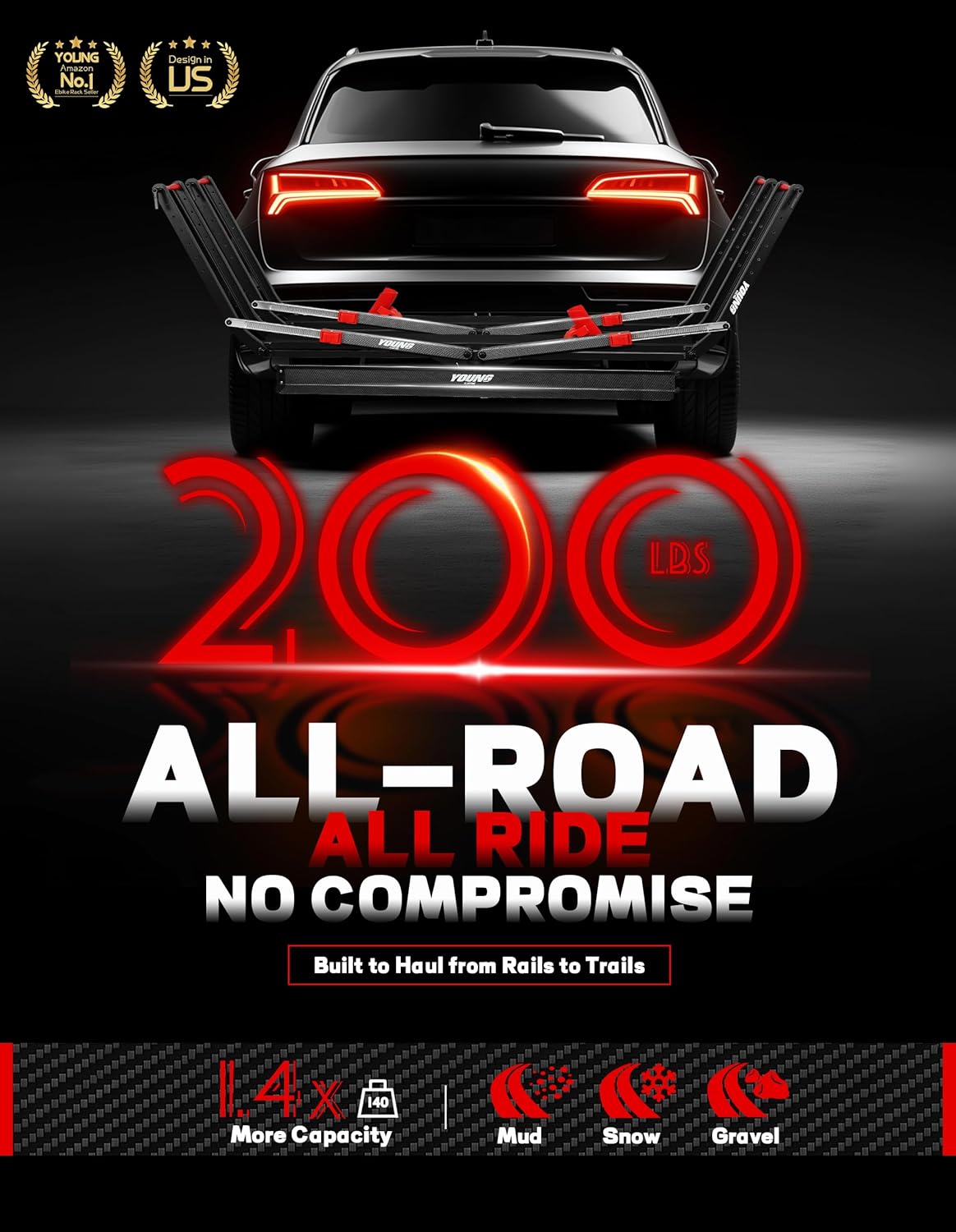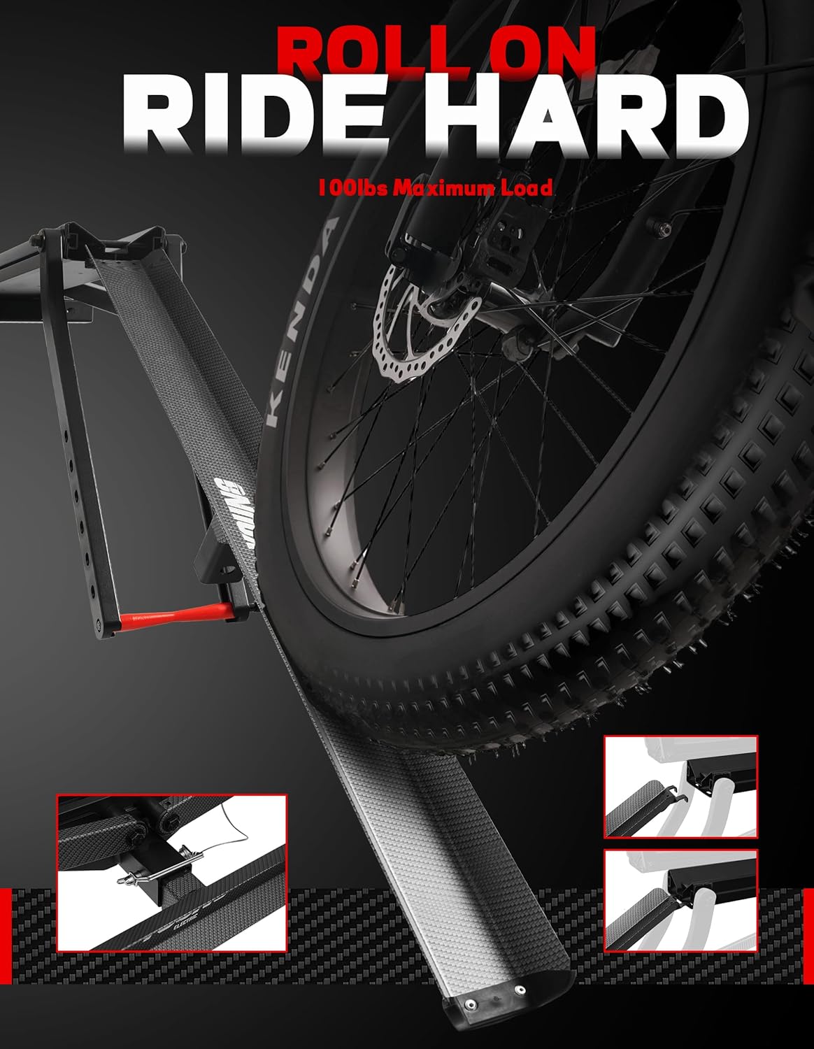 - 【Integrated Ramp for Effortless Loading】 The included ramp makes mounting heavy ebikes and fat tire bikes quick and easy. No heavy lifting required—just roll your bike onto the rack and secure. Great for frequent riders and long trips.