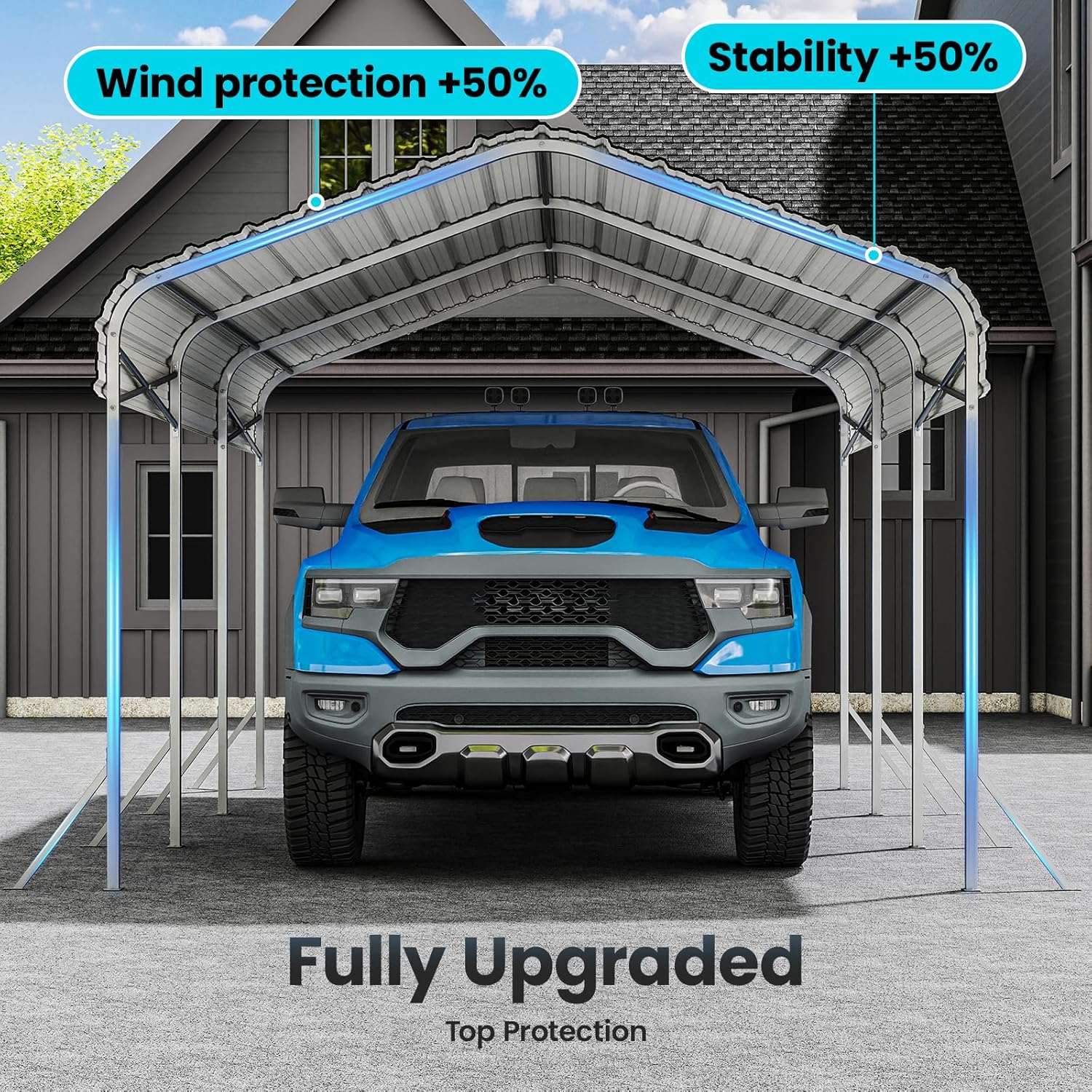 - Year-Round Protection: A reinforced 2" x 2" frame and 27-gauge metal roof provide reliable shelter, protecting your vehicles and equipment from rain, snow, strong winds and sunlight
