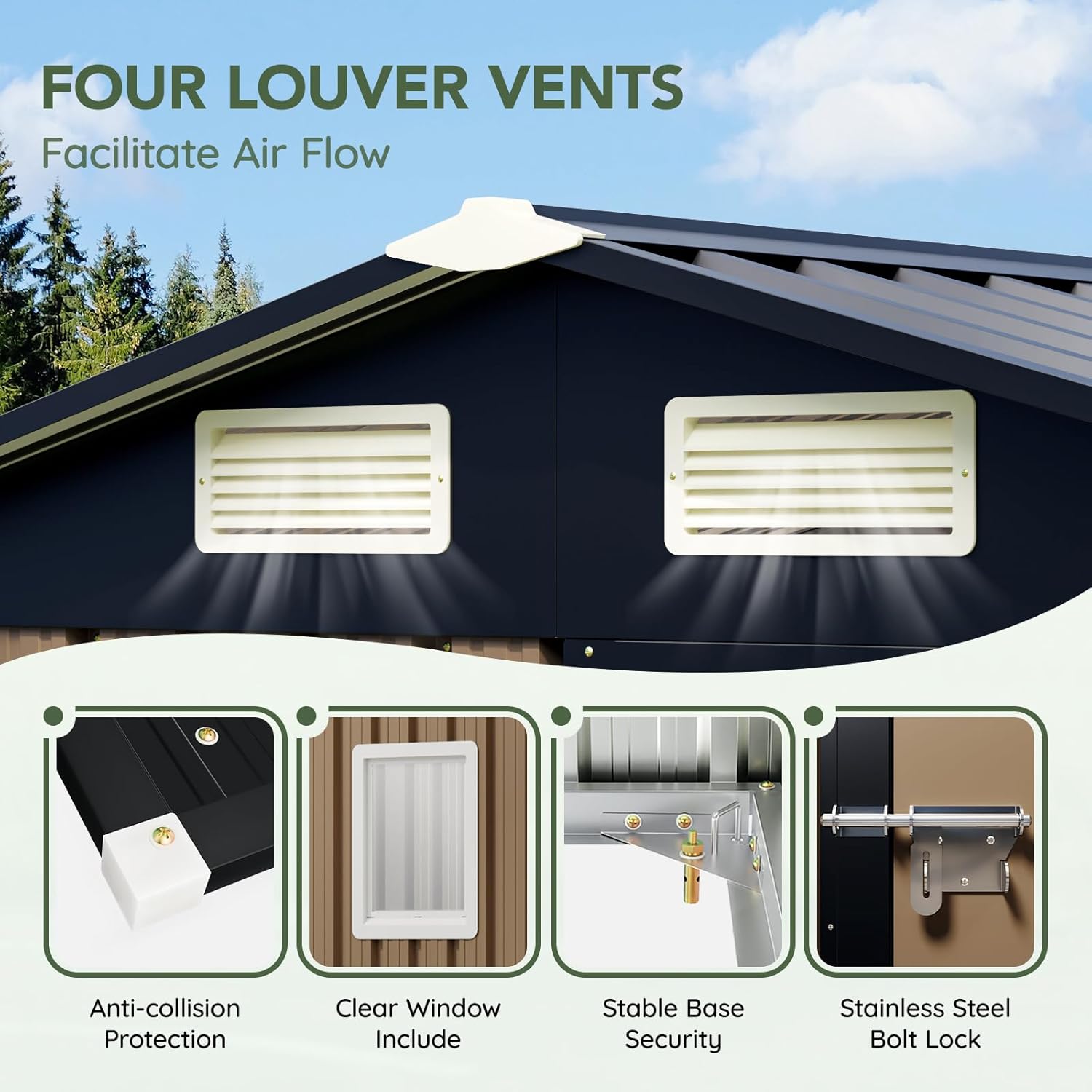 - Heavy-Duty Galvanized Steel Panels – Weather-resistant material protects against rust, corrosion, and UV damage, ensuring long-term use.