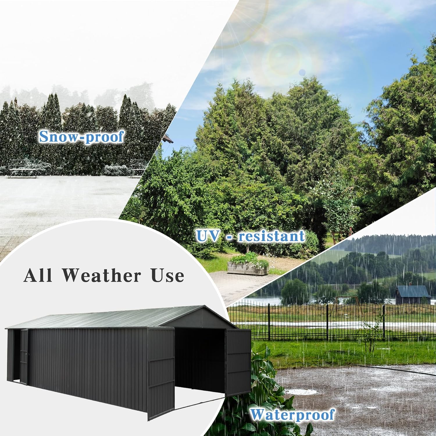 Domi 12x25FT Outdoor Metal Garage Shed, Extra Large Carport with Skylights & Dual-Entry, Backyard Storage Shed for Car, Truck, Lawn Mower and Tool, Dark Grey