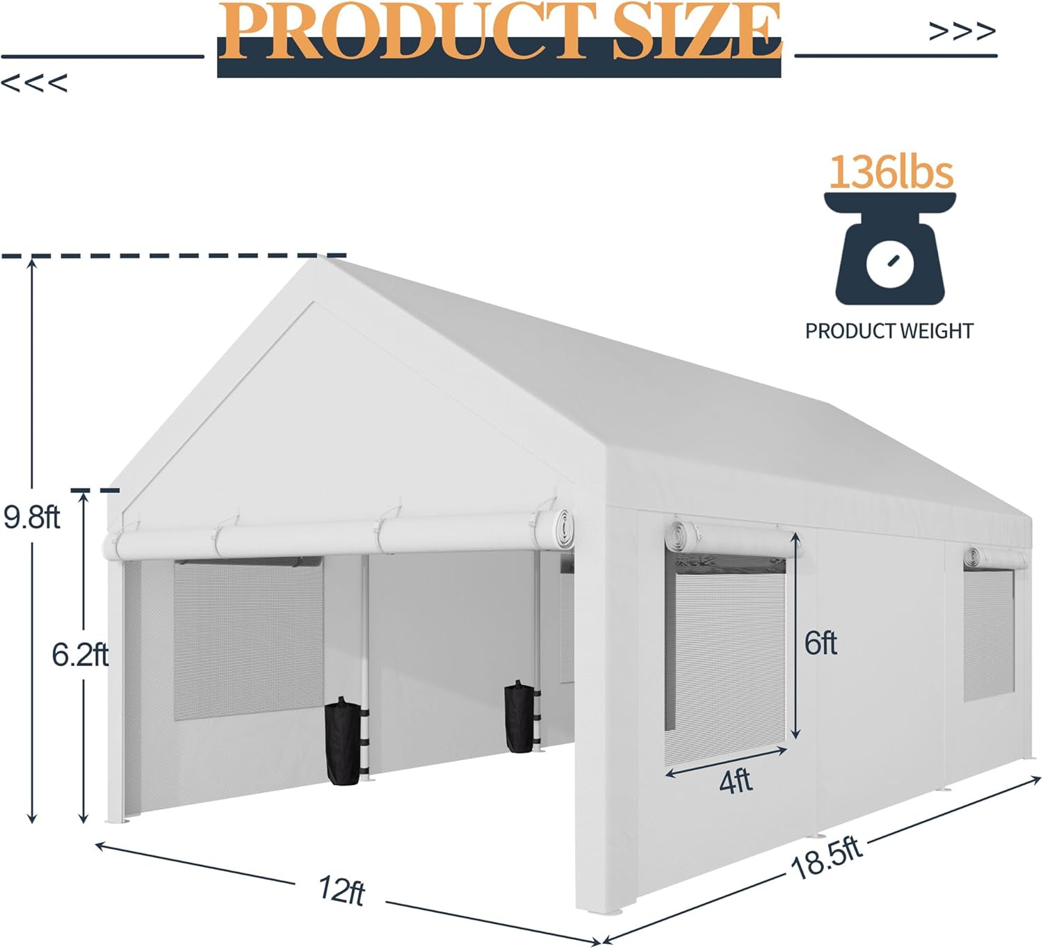 - 【Larger Carport】: The 12x20 heavy duty carport provides plenty of space for your vehicles, boats, cargo, etc. Detachable side walls and doors to meet your needs. It is suitable for outdoor events like parties, weddings, commercial fairs.