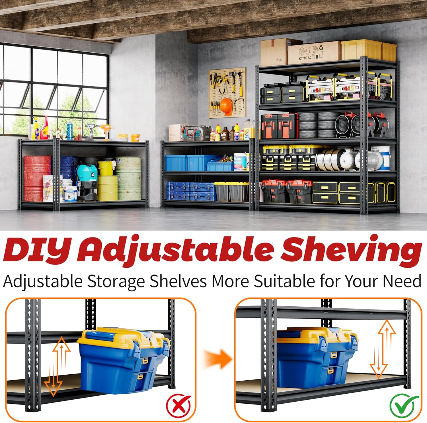 - Special Feature : 5 Tier Storage Shelves, Adjustable, Garage Shelving, Heavy Duty Shelving