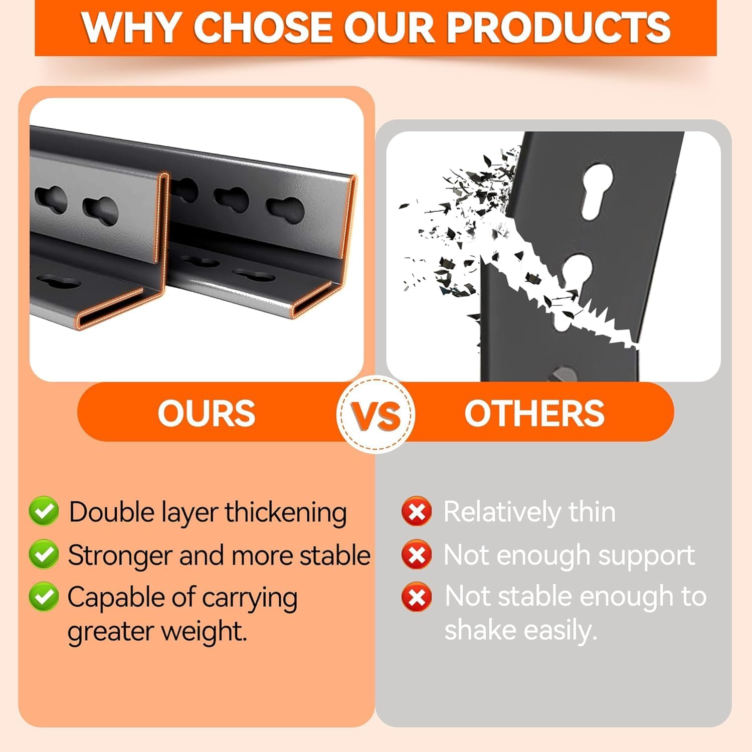 - 【Strong Load-bearing Capacity】Shelves are made of high-quality steel, our garage shelves have extraordinary load-bearing capacity, even heavy toolboxes, tires or sports equipment can be easily carried to ensure the safety of your belongings