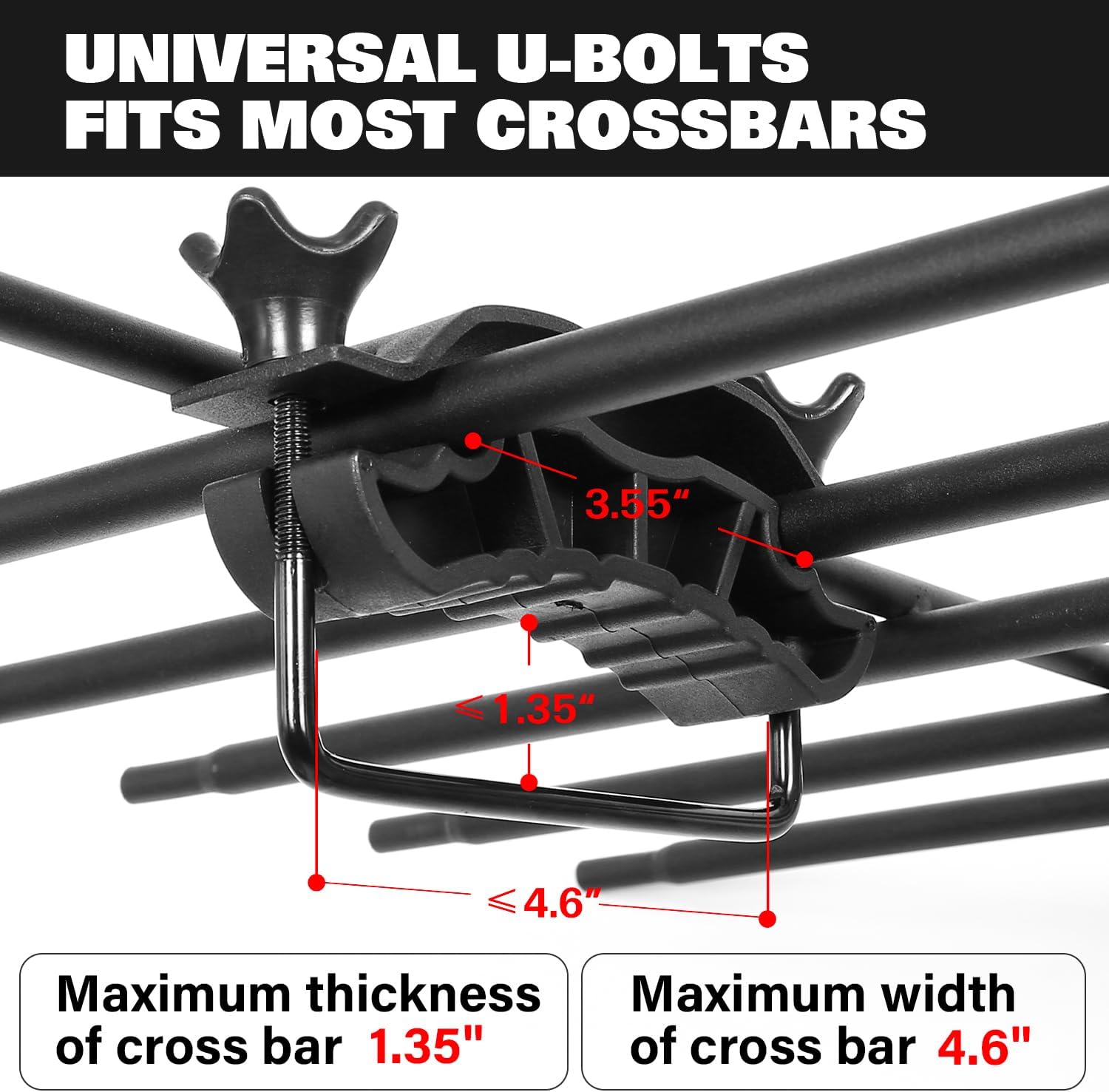 - Easy Assembly: Simple to assemble and install on your vehicle’s crossbars using six universal U-bolts. Adjustable distance crossbars are recommended for optimal fit.