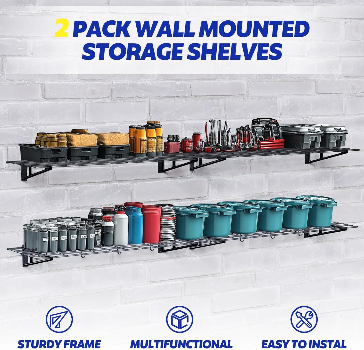 - 【Heavy-duty Garage Wall Organizer】The wall mounted garage shelves are constructed from durable, heavy-duty carbon steel. The high-quality materials and sturdy construction ensure they can safely support up to 1,200 pounds, meeting your storage needs.