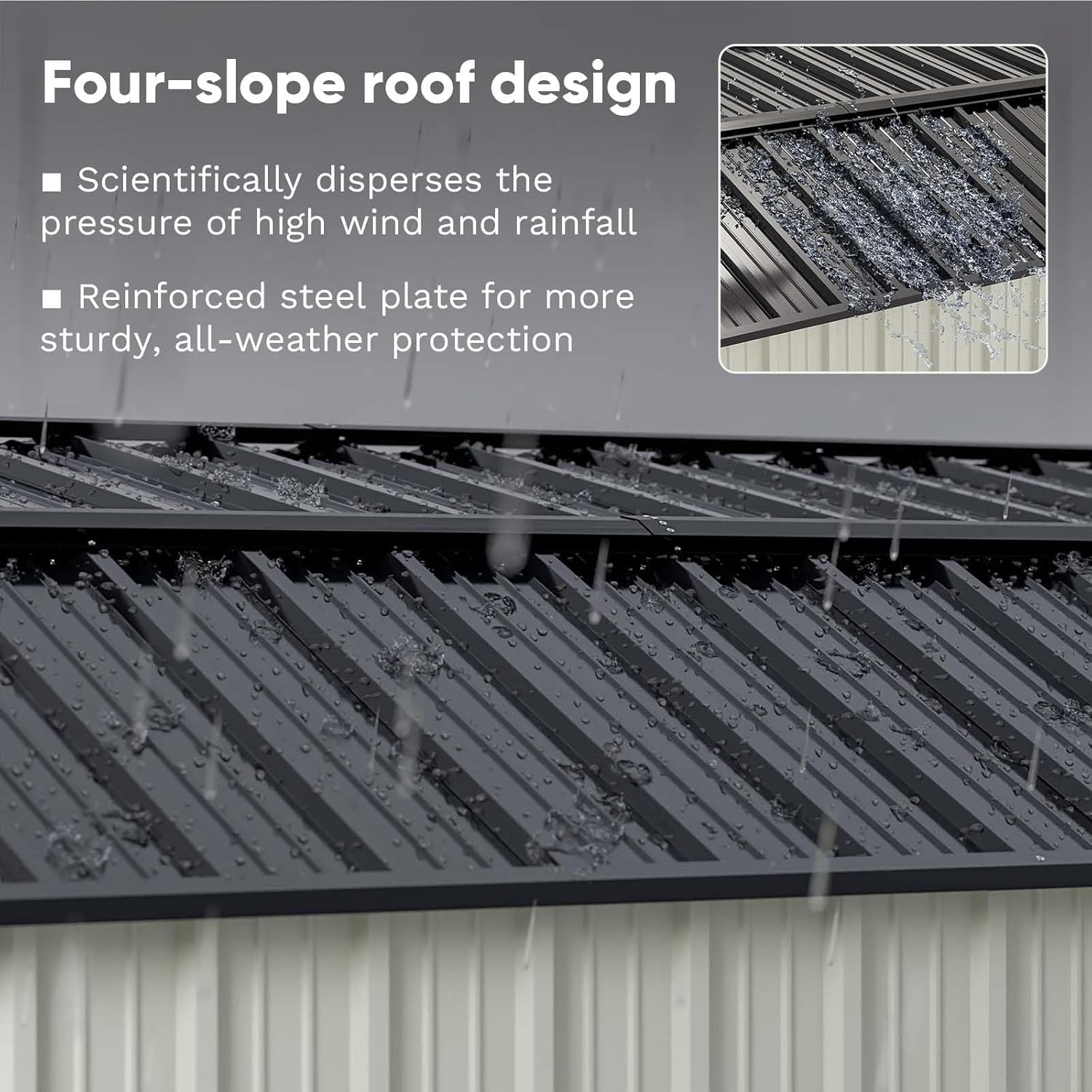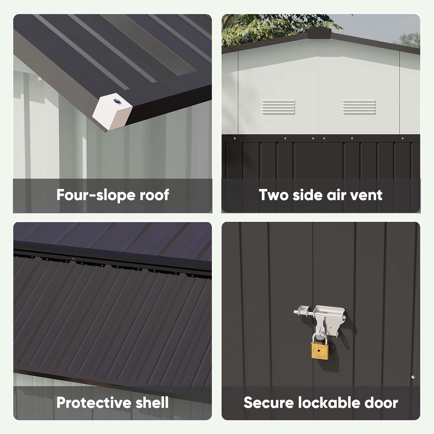 - Waterproof and Rot-Resistant: Equipped with waterproof and rot-resistant features, ensuring a lasting, dry environment for items stored inside and extending the shed's overall lifespan.